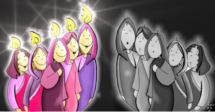 Il punto di svolta del racconto non è la veglia mancata (si addormentano tutte, tutte ugualmente stanche) ma l’olio delle lampade che finisce. Alla fine la parabola è tutta in questa alternativa: una vita spenta, una vita accesa. Tuttavia lo scatto in alto, l’inatteso del racconto è quella voce nel buio della mezzanotte, capace di risvegliare alla vita. Io non sono la forza della mia volontà, non sono la mia capacità di resistere al sonno, io ho tanta forza quanta ne ha quella Voce, che, anche se tarda, di certo verrà, a ridestare la vita da tutti gli sconforti, a consolarmi dicendo che di me non è stanca, a disegnare un mondo colmo di incontri e di luci. A me serve un piccolo vaso d’olio. Il Vangelo non dice in che cosa consista quell’olio misterioso. Forse è quell’ansia, quel coraggio che mi porta fuori, incontro agli altri, anche se è notte. La voglia di varcare distanze, rompere solitudini, inventare comunioni. E di credere alla festa: perché dal momento che mi mette in vita Dio mi invita alle nozze con lui. Il Regno è un olio di festa: credere che in fondo ad ogni notte ti attende un abbraccio. (Padre Ermes Ronchi)