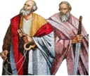 In questa domenica di fine giugno 2025, celebriamo la solennità di due giganti della fede che sono gli apostoli Pietro e Paolo. Pietro in primo luogo scelto da Gesù, al quale rispose prontamente, lasciando ogni cosa e seguendo lungo la strada della sua missione terrena. Paolo che venne alla fede in Cristo, in seguito, dopo la conversione e in seguito ad una specifica illuminazione del Cristo ricevuta sulla via di Damasco. La devozione popolare, fin dai primi tempi del cristianesimo, li ha associati nella venerazione e nella proposizione dei loro modelli di vita cristiana. Entrambi apostoli anche se Paolo non ha conosciuto direttamente Gesù, né faceva parte del gruppo dei Dodici, entrambi soprattutto testimoni e martiri in una Roma che non voleva assolutamente che il cristianesimo prendesse piede e si diffondesse. Sono gli apostoli delle catacombe che ebbero il coraggio di portare avanti l’opera di evangelizzazione, in un impero pagano, senza timore della morte e del martirio. Riflettere sulla loro testimonianza di vita cristiana è per noi cristiani del XXI secolo un forte richiamo ad essere fedeli ai nostri impegni assunti davanti a Dio con il battesimo, sacramento della nostra fede. Certo Pietro non fu subito capace di entrare nel mistero di Cristo, soprattutto nell’accettare un Messia umiliato ed offeso con la condanna e la morte in croce, fino al punto di rinnegarlo oppure scoraggiato ritornare sui suoi passi mentre già a Roma il cristianesimo aveva preso piede. Da parte sua, Paolo che da persecutore dei cristiani, presente al martirio, per lapidazione, di Santo Stefano e poi l’apostolo delle Genti, ci dicono questi due santi apostoli come è difficile essere fedeli fino in fondo alla parola di Dio e come è difficile vivere e sentirsi chiesa. Tutto passa, solo Dio resta. Sono passati, regni, popoli, culture, nazioni, potentati, la Chiesa, fondata su Cristo, nonostante le tante tempeste e i peccati degli uomini di chiesa e dei cristiani, rimane salda al suo popolo, perché la Chiesa non è dei Papi, dei vescovi, dei preti e neppure dei fedeli laici, è solo e soltanto di Cristo. Sono di chi vive in Cristo promuove e difende la chiesa con la santità della vita e non con le sole parole di circostanze o nuovi integralismi che possono trovare accoglienza in una chiesa che è e deve continuare ad essere madre, sull’esempio di Pietro e Paolo, apostoli della fede e della comunione ecclesiale. (Padre Antonio Rungi)